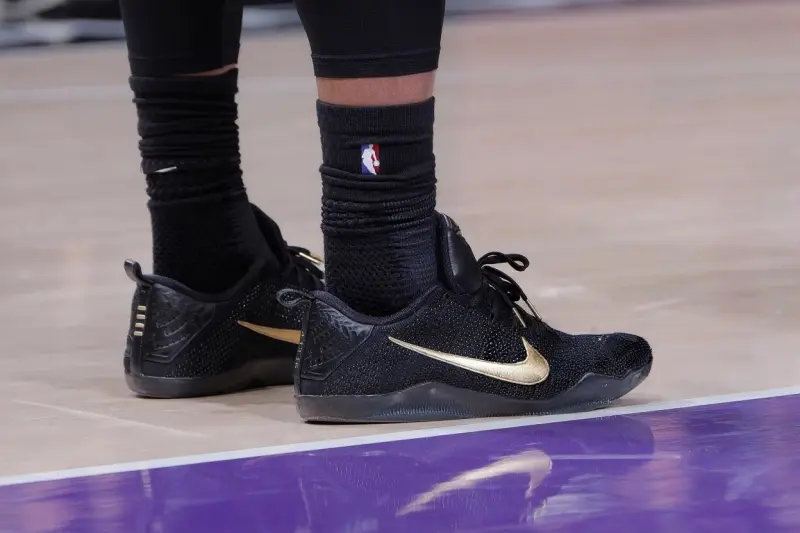 比赛中,德罗赞上脚黑金色Nike Kobe 11 Elite。
